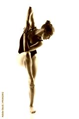 Modern ballet dancer posing on white background