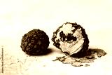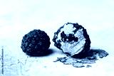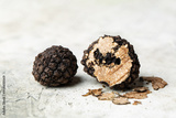 Slised black italian truffle, Tuber Aestivum. Close up. White table surface.