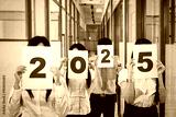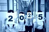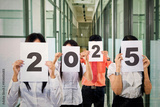 human resource concept, Young businessman holding white billboard with 2025 text on it