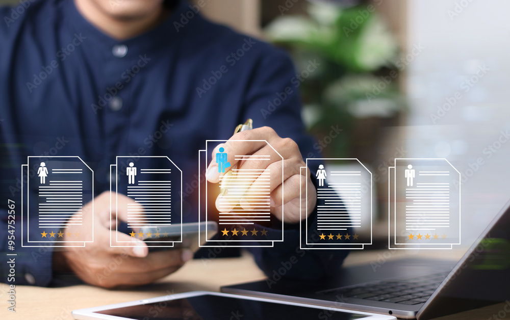 Human Resources HR management Recruitment Employment Headhunting Concept, Human Resources uses computers to search
