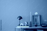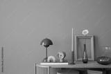 Contemporary interior styling with a blend of colorful and modern decor, including a unique vase and a balloon dog sculpture.