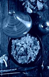 Uzbek cuisine food pilaf, rice with carrots, vegetable oil, raisins