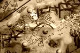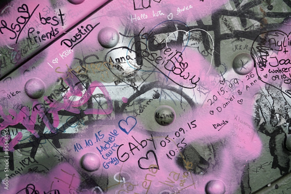 Schmierereien verliebter Paare an der Hohenzollernbrücke in Köln