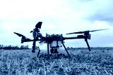 drone farm use for spray a water, fertilizer or chemical to the field, farm for growth a yields, crop. IoT Solution for Smart Agriculture. treatment of plants with chemicals from pests