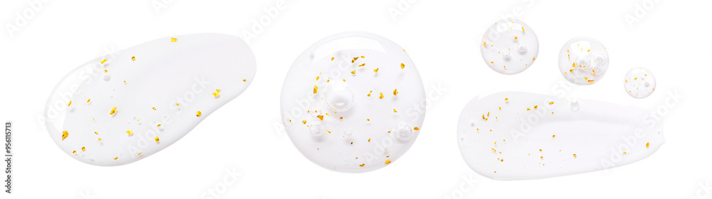 serum gel essence texture with gold closeup on white background