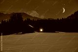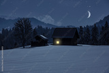 Alte Holzhütte im Winter in verschneiter Landschaft
