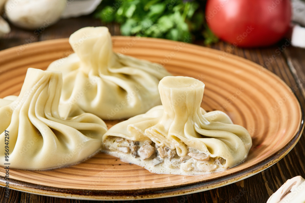 Khinkali Dumplings with Cheese on Plate - Georgian Cuisine Specialty