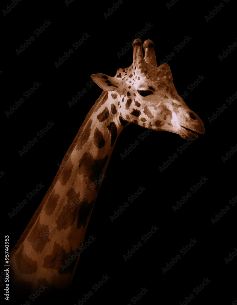 Giraffe on black background