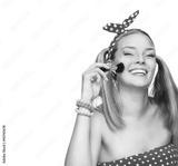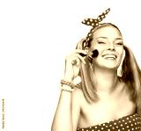 Makeup Applying closeup. Cosmetic Powder Brush. Isolated on white background