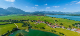 Ausblick auf die Landschaft am Forggensee bei Brunnen nahe Schwangau im Ostallgäu