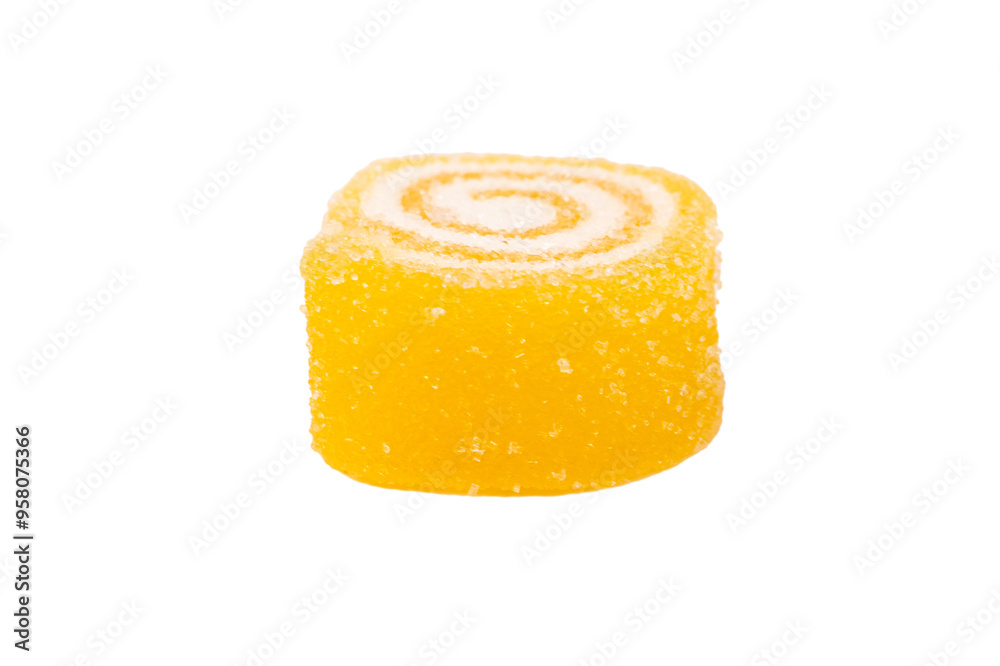 Jelly sweet candy roll isolated on a white background. Marmalade candy.