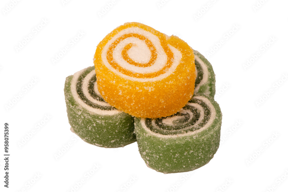 Jelly sweet candy roll isolated on a white background. Marmalade candy.