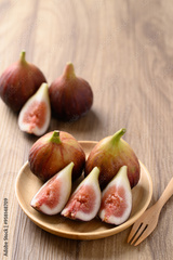 Piece of fig on wooden plate ready to eating, Healthy fruit