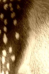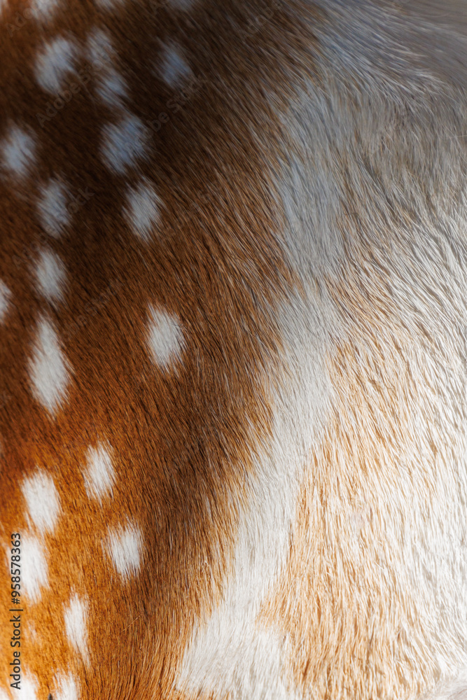 Texture of deer skin and fur, white spots on red fur. Background for design.