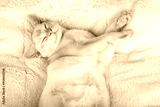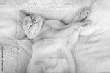 Red Burmese kitten sleeps sweetly on a soft blanket.