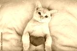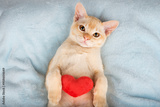 Red Burmese kitten with a red plush heart.