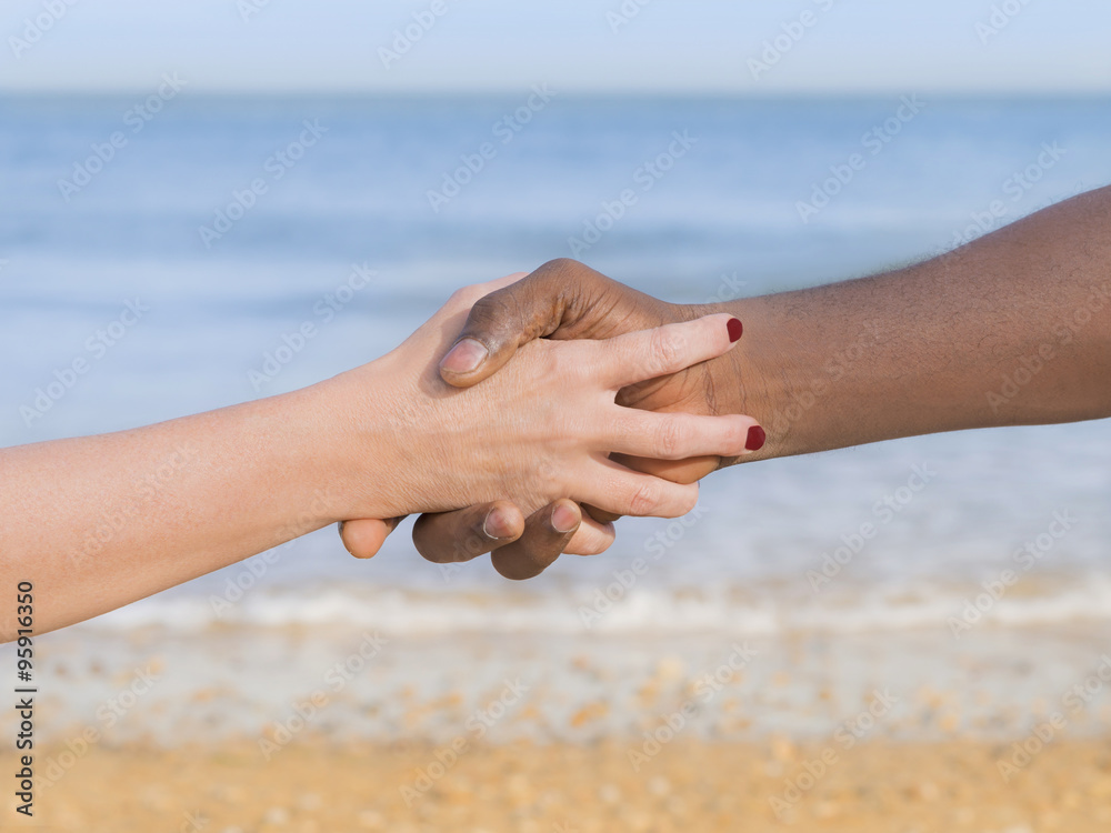 Man and woman holding each other’s hand (symbol of love and diversity)