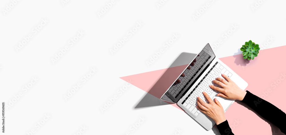 Person using a laptop computer from above