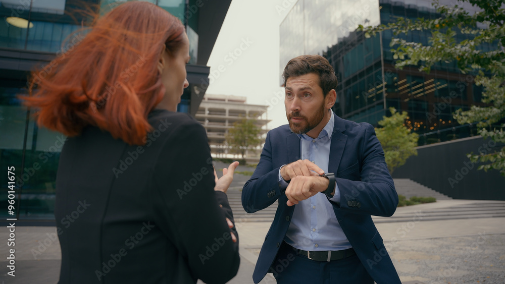 Angry negative conversation business misunderstanding communication corporate deal problem trouble businesswoman arguing with authority businessman argue conflict quarrel colleagues in city stress