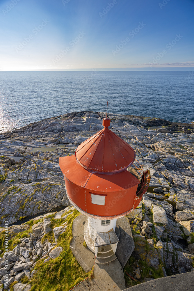 Kvitholmen Lighthouse near Vevang atlantic road in the summer evening, Norway