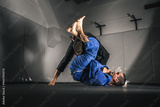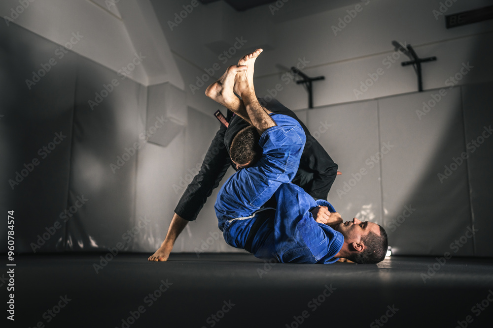 BJJ Brazilian Jiu jitsu Athlete fighters training sparing technique at the academy fight in gi kimono