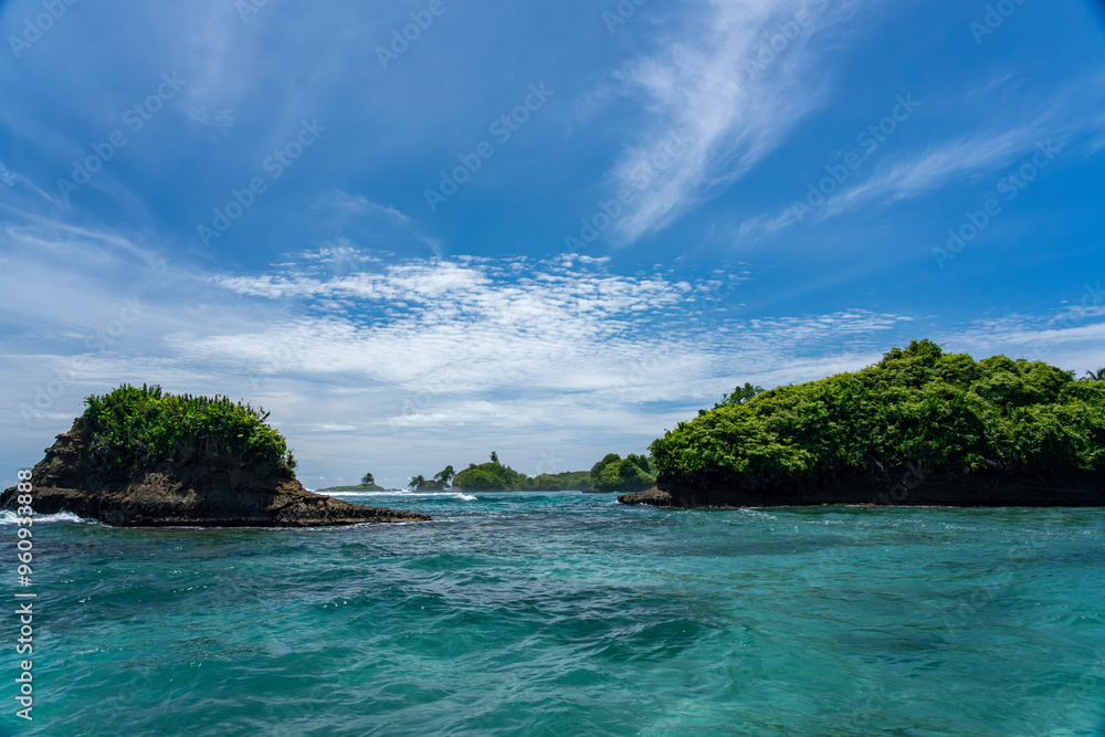 Tropical Island Paradise with Crystal Clear Water, Lush Greenery, and Serene Beaches - Stunning Caribbean Landscape for Eco-Tourism, Adventure, and Unspoiled Nature Travel Destinations