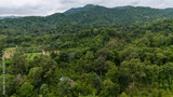 Aerial view of Durians farm in Laplae district, Thailand. Durian and Longkong in the Laplae district are grown on the mountain, hence the name. "Edible Mountain"