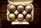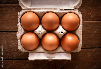 Egg box on a rustic wooden board