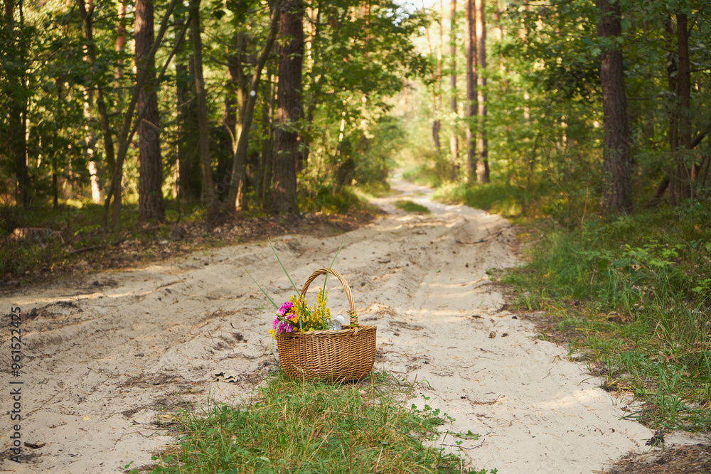 piknik,kosz,bukiet kwiatów