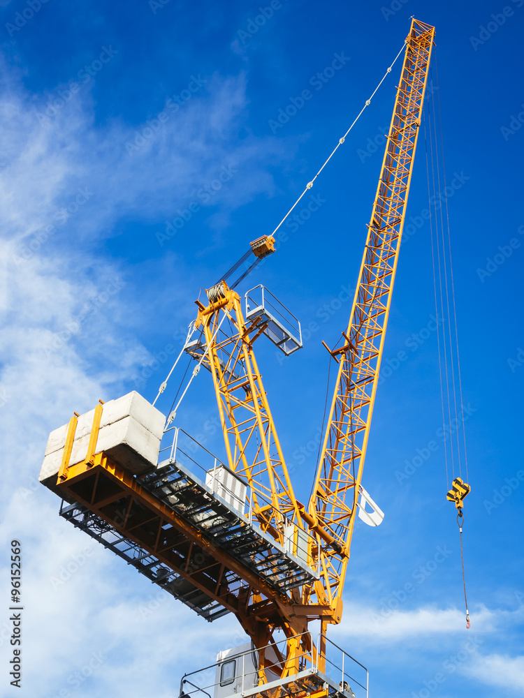 Crane work in construction site with blue sky background
