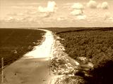 Zdjęcie lotnicze plaży nad morzem. Mierzeja Wiślana nad morzem Bałtyckim