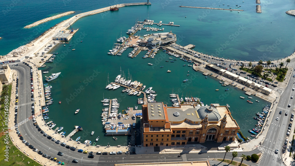 Aerial view of the Margherita theater in Bari, Puglia, Italy. It is located on the city's waterfront, near the touristic pier.