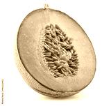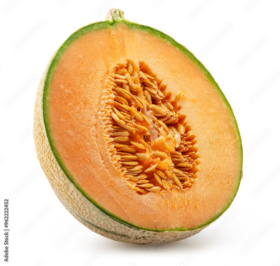 Cantaloupe melon cross cut section isolated on white background. File contains clipping path.