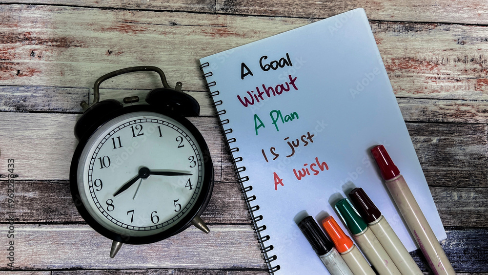 Concept of A Goal Without A Plan Is Just A Wish write on book isolated on Wooden Table.