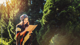 Asian woman relax in the holiday. Travel nature and write a note in the notebook at the park on the mountains In Thailand