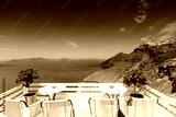 View of the ocean from a balcony in Santorini, Greece