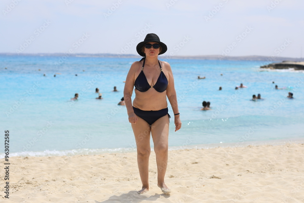adult woman in swimsuit relaxing on the seashore