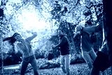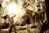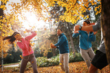 Amidst the colorful autumn leaves, their playful spirits emerge. The friends engage in a friendly leaf-tossing match, filling the air with their infectious laughter and joy.