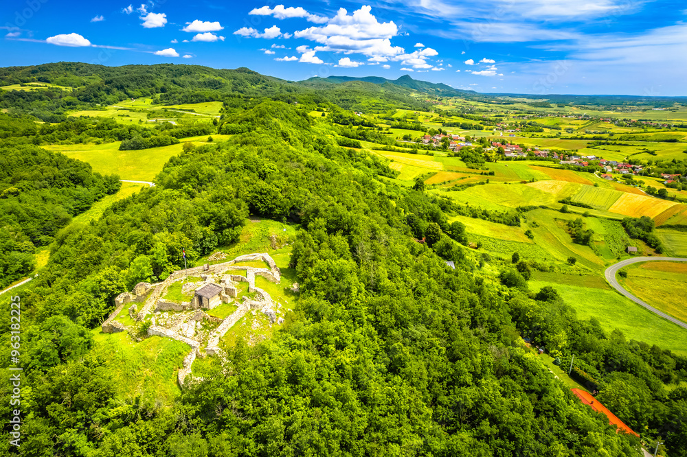 Canjevo fortress ruins on Kalnik mountain aerial view