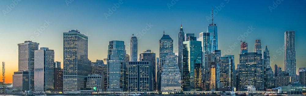 scenic view from Brooklyn harbor side to skyline of Manhattan, New York