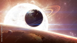 Beautiful giant planets in front of glowing star. Elements of this image furnished by NASA