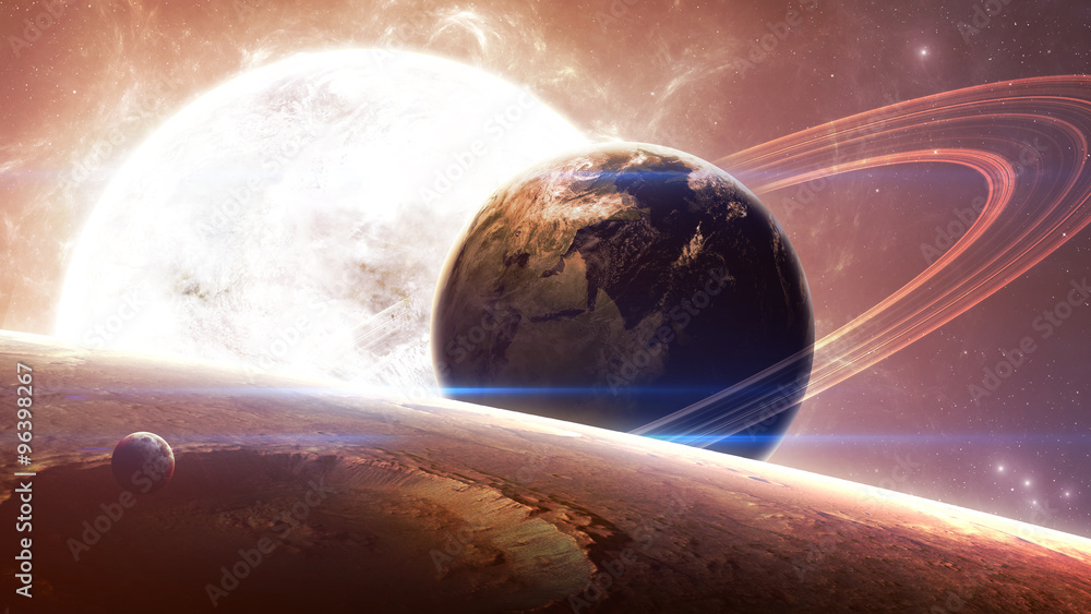 Beautiful giant planets in front of glowing star. Elements of this image furnished by NASA