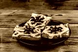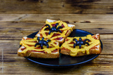 Sandwiches with the spider and spider web on wooden table. Halloween celebration concept