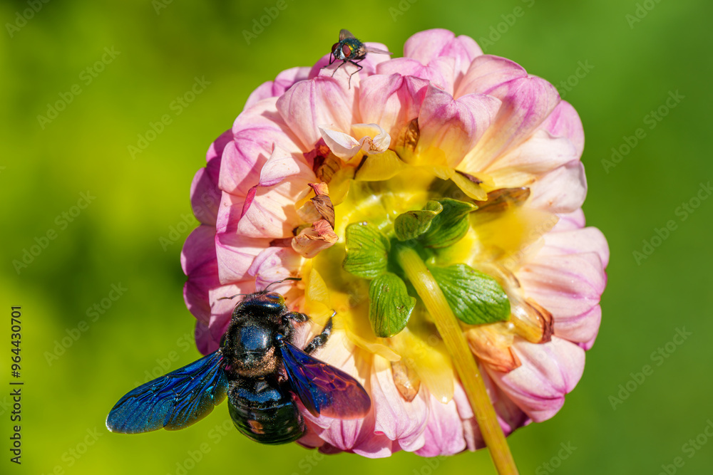 A Beautiful Insect, Xylocopa violacea, Blue Carpenter, Delicately Pollinating a Vibrant Flower in the Heart of Natures Splendor