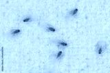 Pseudaulacaspis pentagona, the white peach scale or mulberry scale, is a species of armoured scale insect in the family Diaspididae. Serious plant pest. Males on paper.