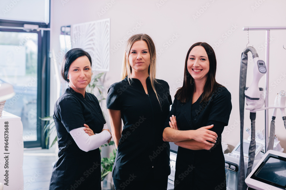 Team of women beauticians or aesthetic medicine professionals at work portrait in a clinic or beauty salon