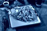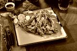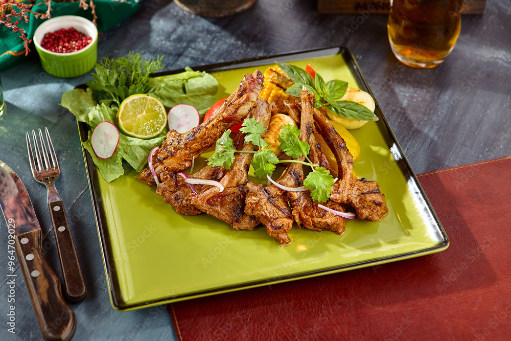 Grilled Lamb Chops with Fresh Vegetables on a Green Platter