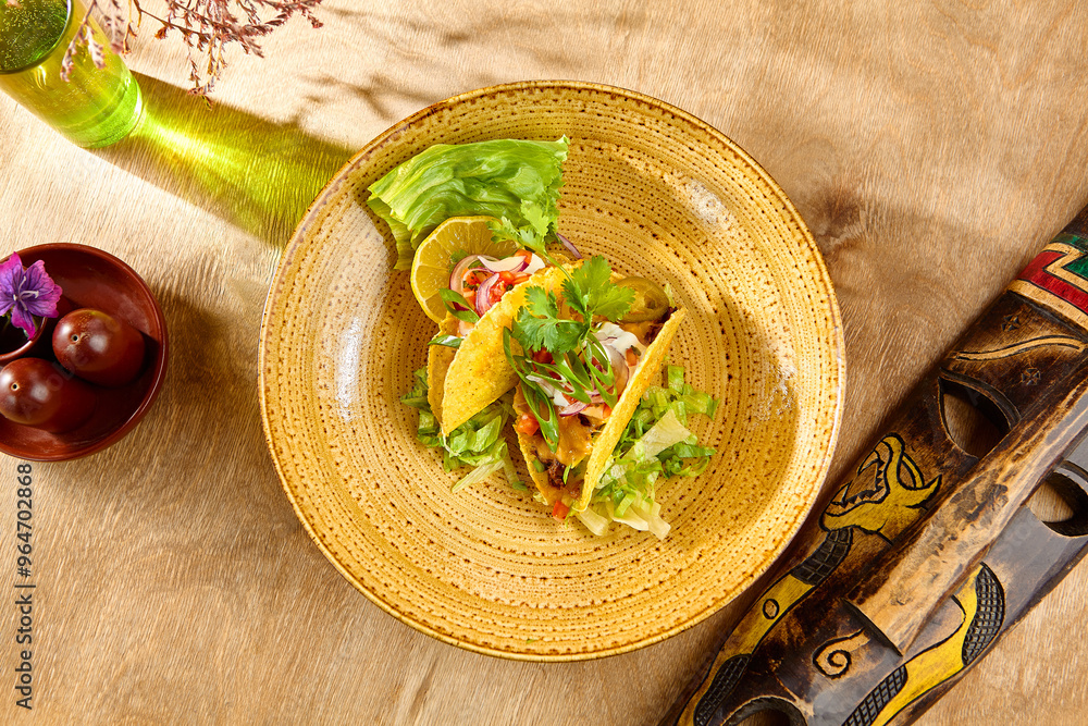 Delicious Beef and Vegetable Taco on a Rustic Plate - Fresh Mexican Cuisine