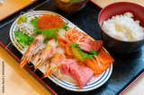 Exquisite seafood and Seafood bowl with fresh fish at Japanese restaurant.