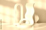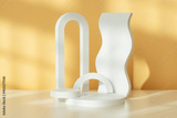 Simple Minimalist White Geometric Shapes on a Light Orange Background in Natural Lighting